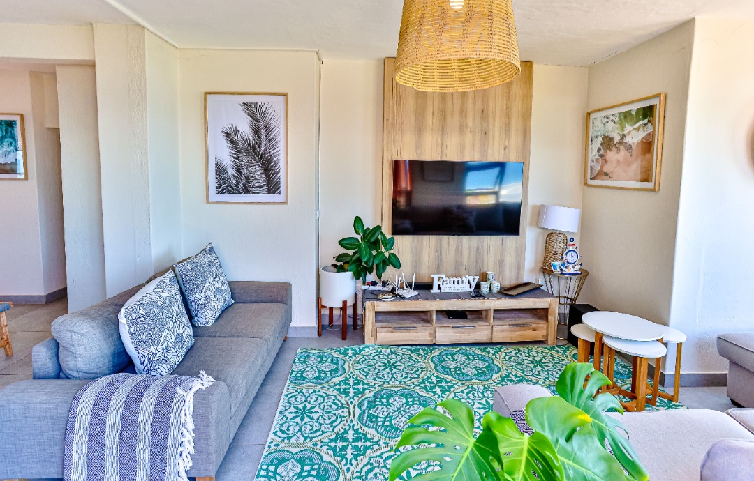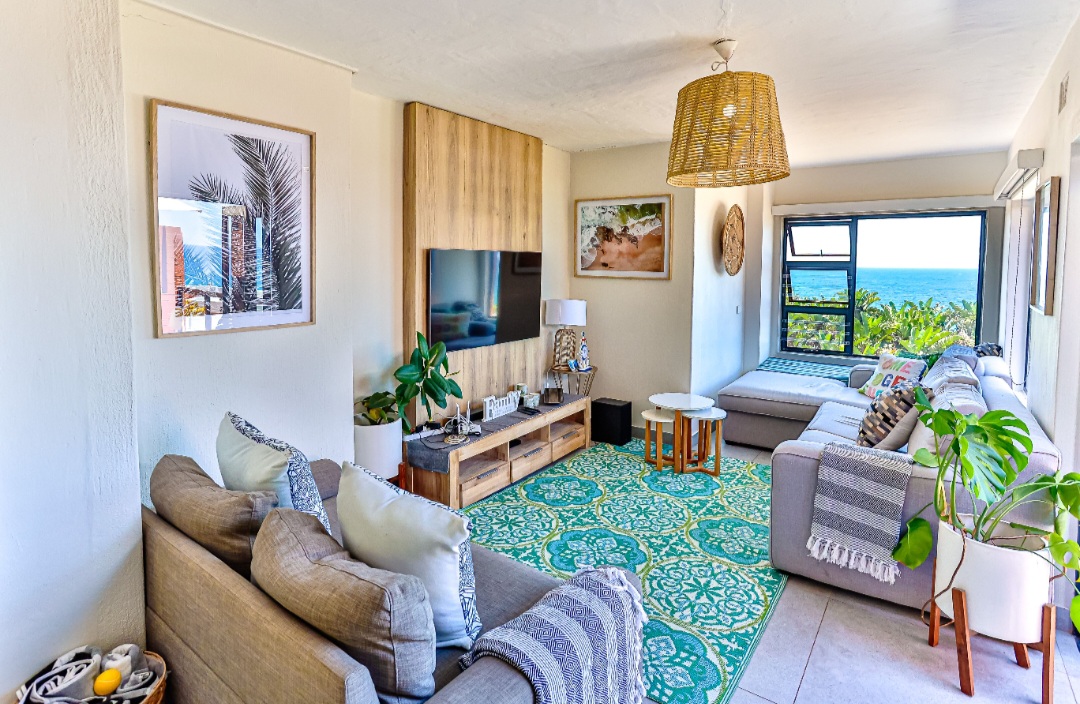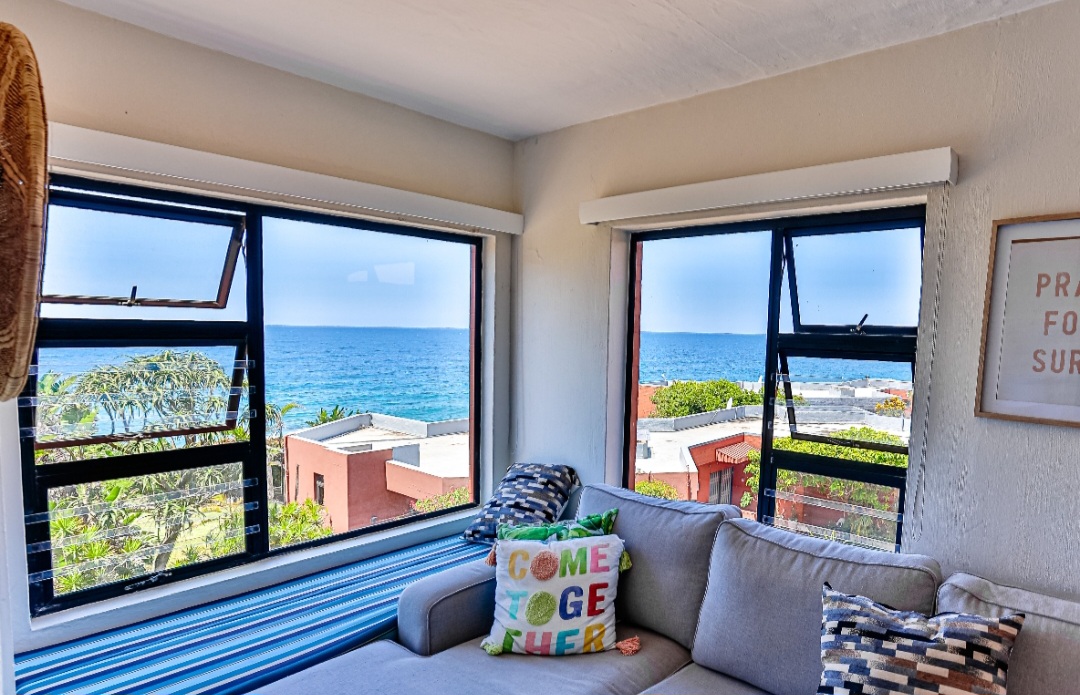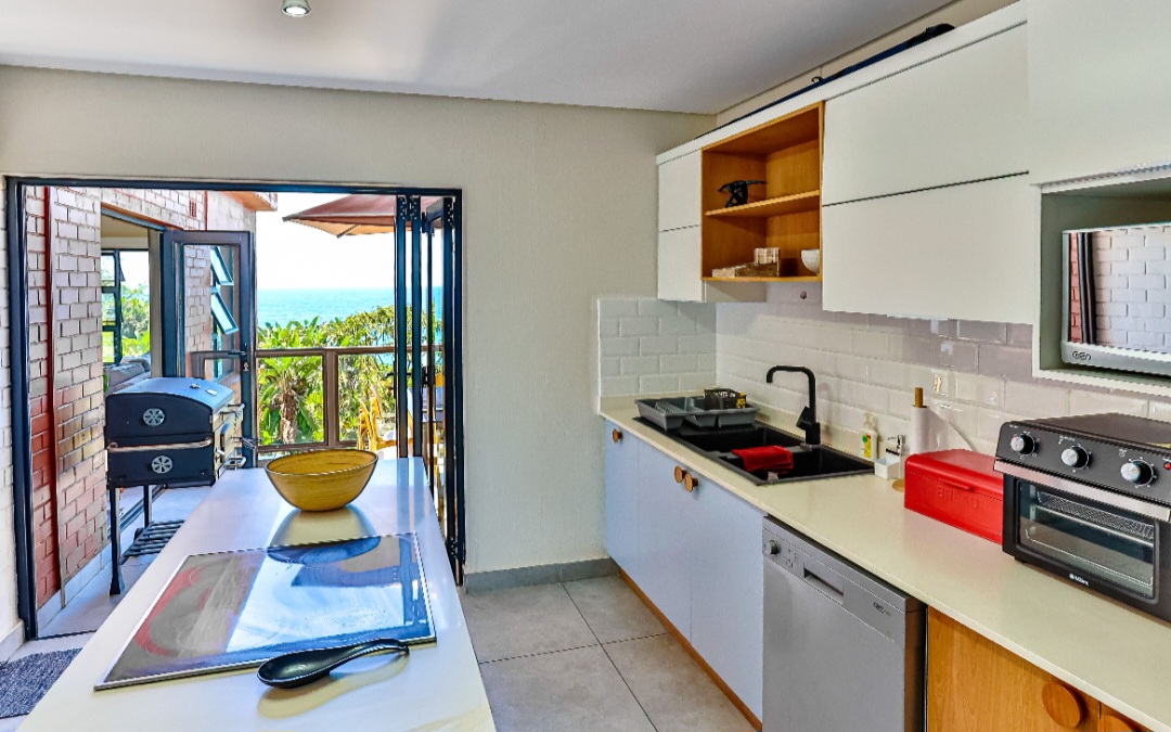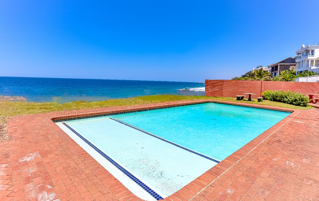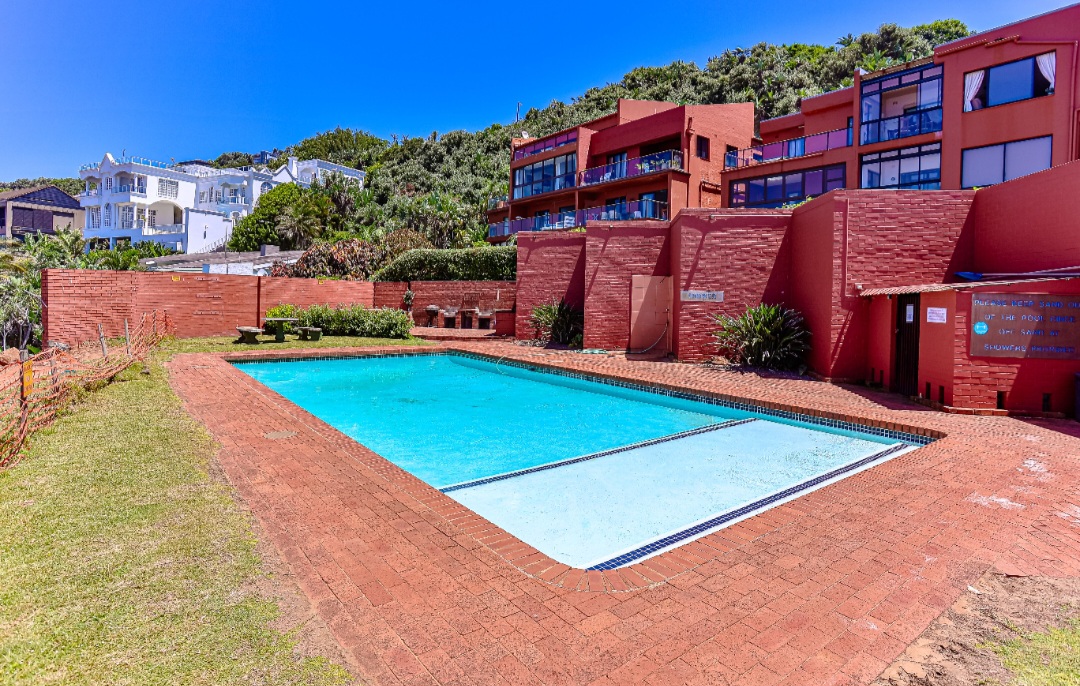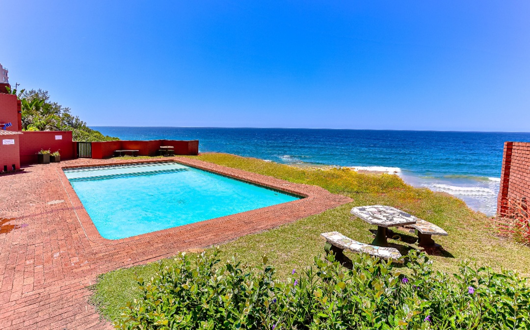 Relax with the whole family at this peaceful apartment. Watch the dolphins swim by, whilst enjoying a sundowner/braai with amazing sea views from the balcony. Sea views also off the kitchen, dining area, living room & main en-suite bedroom. Secure complex with parking, swimming pool with BBQ & picnic area. Laundromat within the complex. Beach is 2 min walk through beach access gate. Restaurants & shopping close by. 18 hole golf course with stunning restaurant & coffee shop.