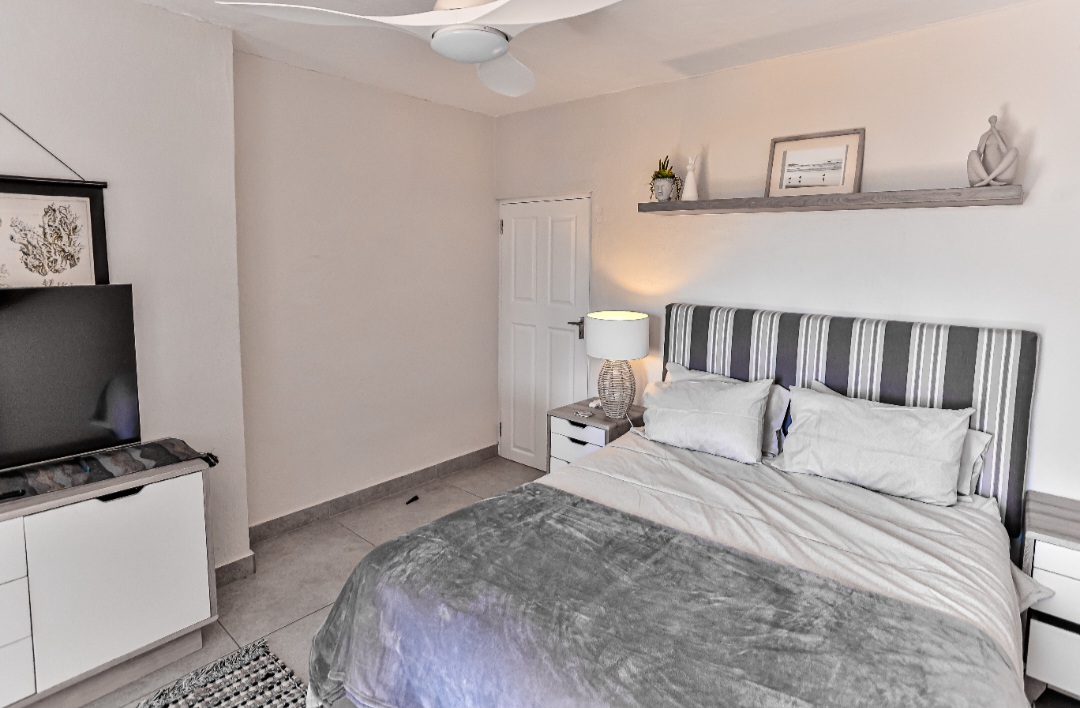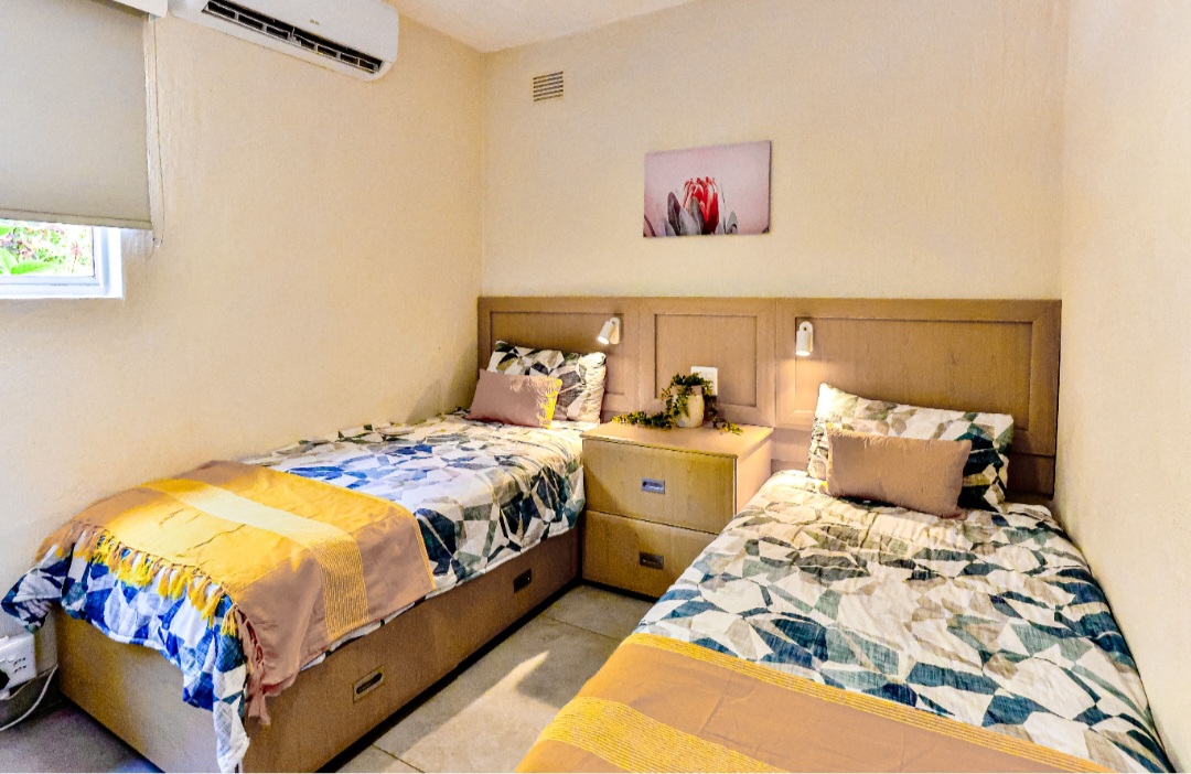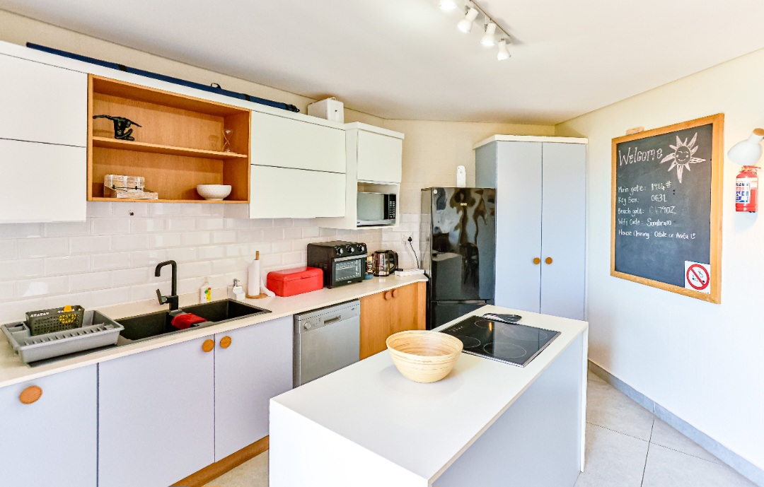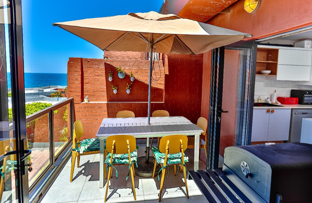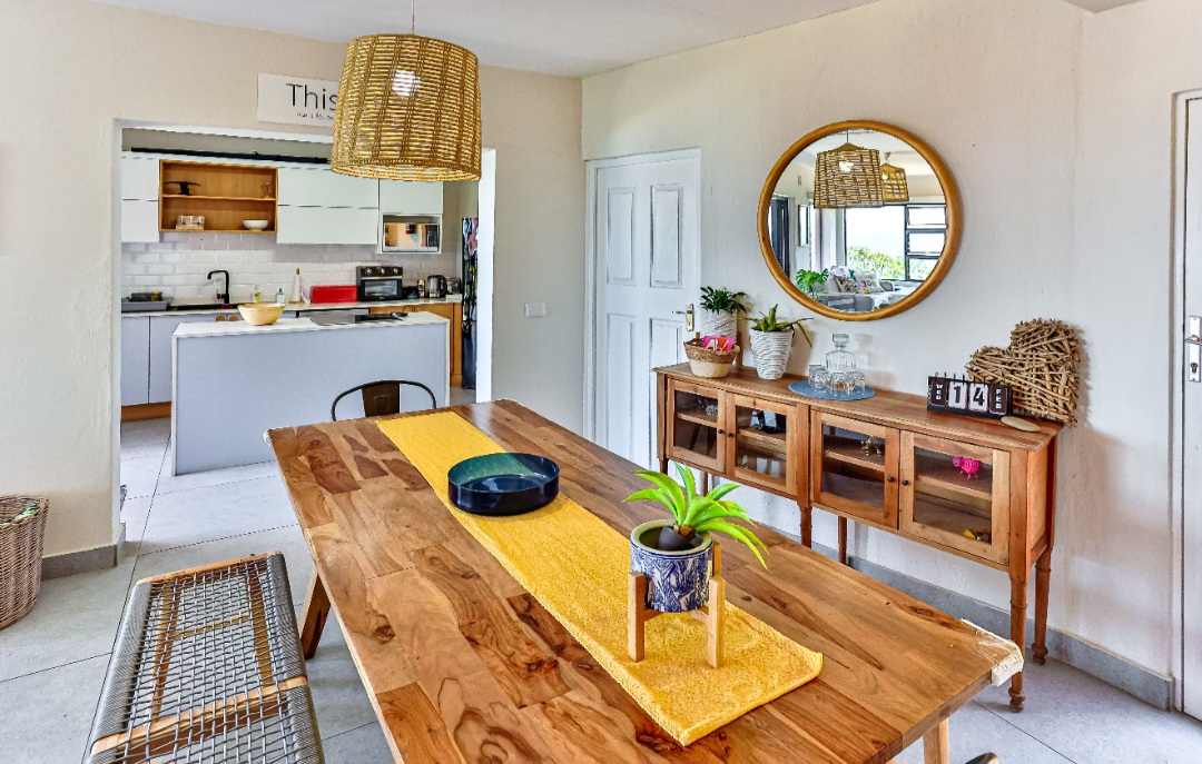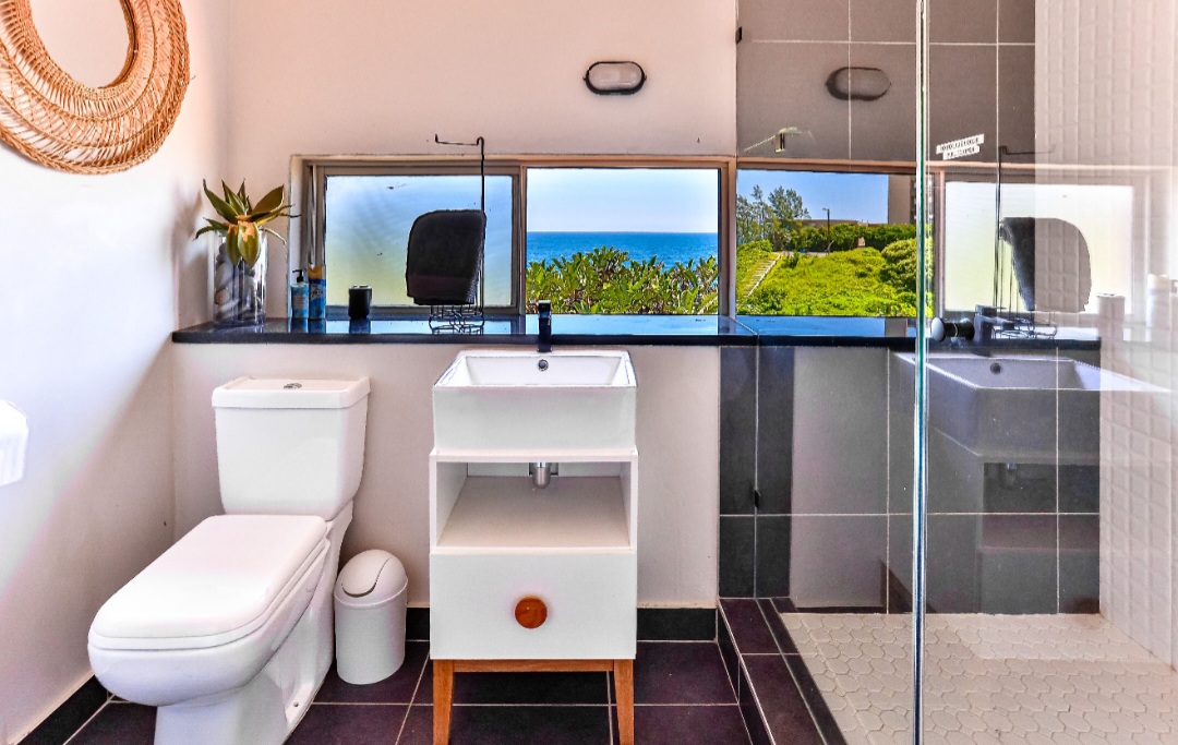 Relax with the whole family at this peaceful apartment. Watch the dolphins swim by, whilst enjoying a sundowner/braai with amazing sea views from the balcony. Sea views also off the kitchen, dining area, living room & main en-suite bedroom. Secure complex with parking, swimming pool with BBQ & picnic area. Laundromat within the complex. Beach is 2 min walk through beach access gate. Restaurants & shopping close by. 18 hole golf course with stunning restaurant & coffee shop.