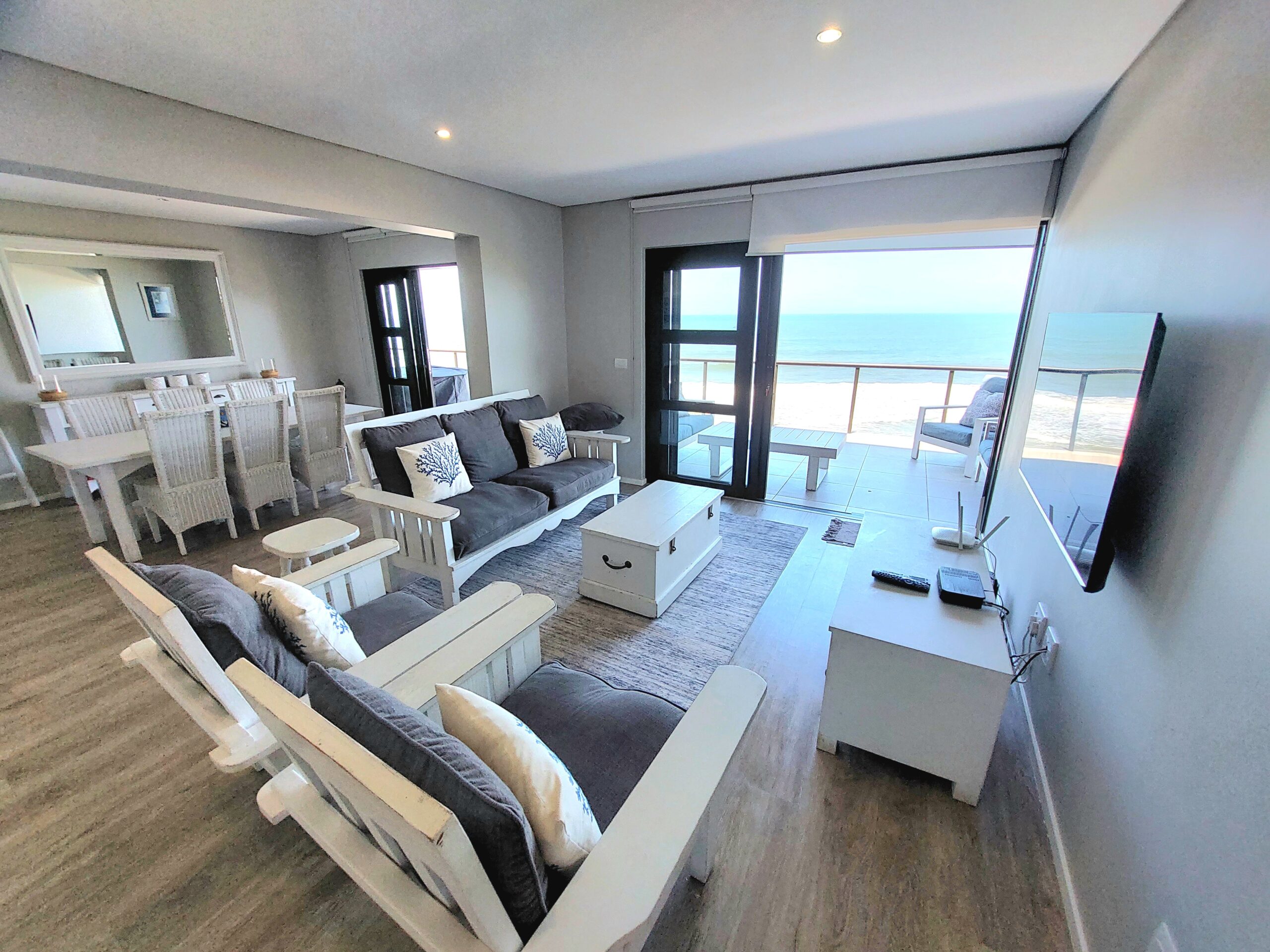 The living area leads to the balcony where guests will find outdoor seating and a gas braai. Free Wi-Fi and secure parking for 2 vehicles are also provided. Guests can cool off in the communal pool or take a stroll down to the semi-private beach through the nearby beach access gate.